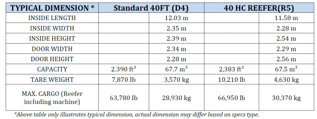 MINIMAL DIMENSION DIFFERENCE BETWEEN 40 FT STANDARD DRY CONTAINER AND 40 HC REEFER CONTAINER